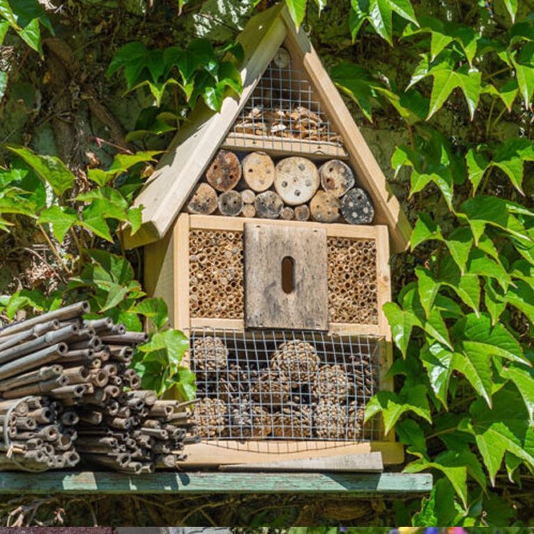 Koop of maak een schitterend insectenhotel en hang die op een mooie plek op. Het helpt veel meer in de natuur dan alleen de insecten.