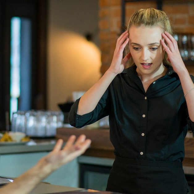 Heeft de serveerster het zichtbaar druk en/of een foutje gemaakt? Wees geduldig en begripvol en negeer de foutjes. Maak je niet druk, en zeg haar hetzelfde.