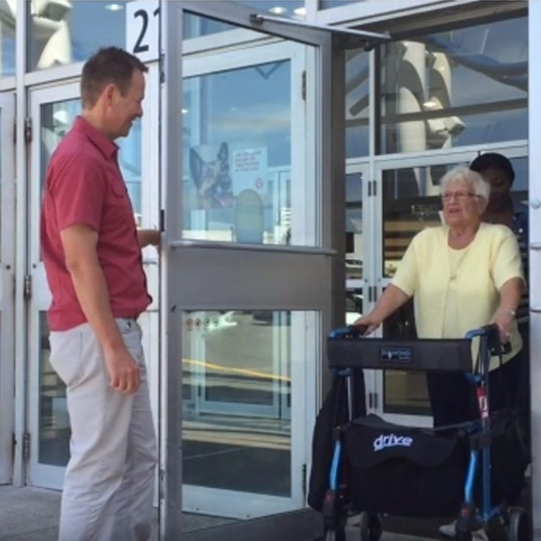 Kijk op het treinstation goed om je heen of je een oudere met een rollator of moeder met kinderwagen de trap af kan helpen.